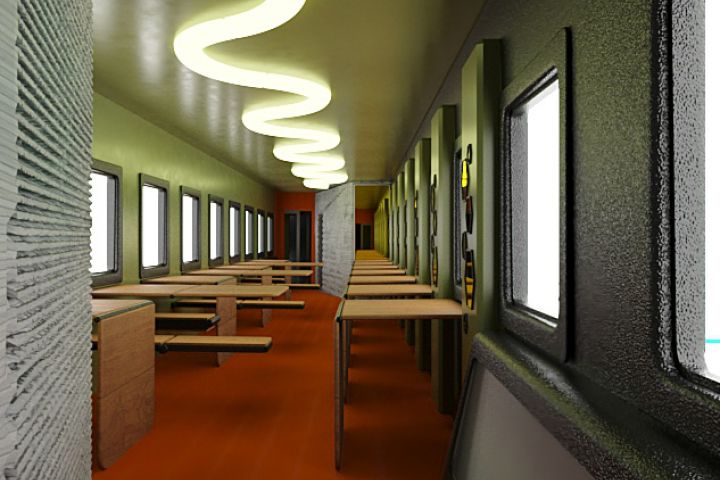 Проект вагона для РЖД , выполняющего функцию клубного пространства трансформера ( спортивная территория, кино зона, территория электронной библиотеки и тд).