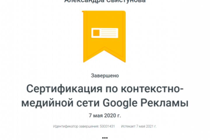 Сертификация по контекстно-медийной сети Google Рекламы Идентификатор завершения: 50031431