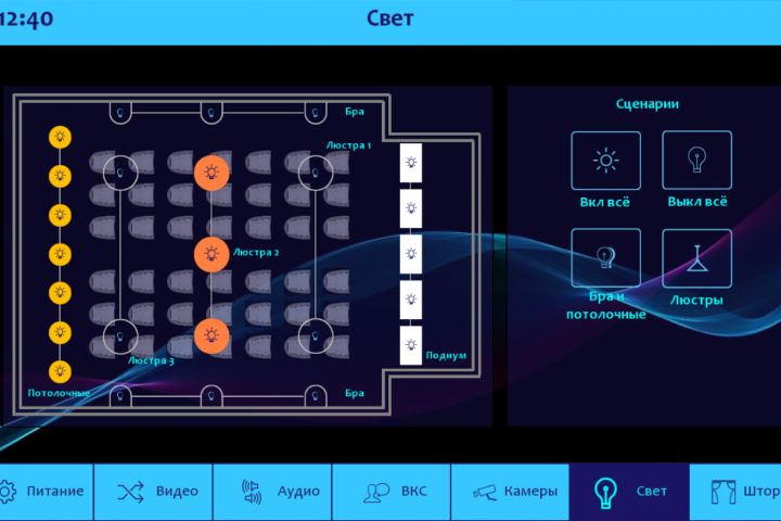 - возможность коммутации видеоконтента на различные средства отображения (ТВ панели, светодиодная стена)