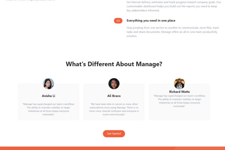 Верстка макета для консалтинговой компании Manage