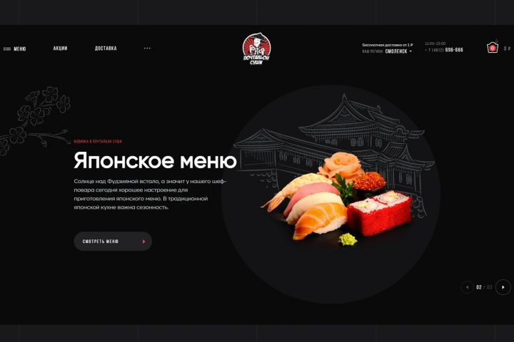 Реализован технически сложный адаптивный сайт на фреймворке Yii2 для службы доставки суши.