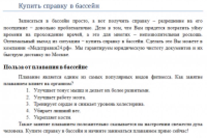 Справка для бассейна