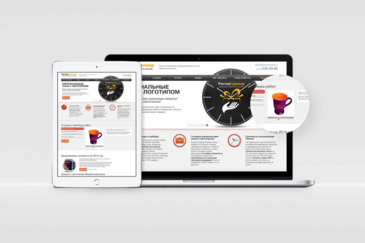 Корпоративный сайт рекламного агентства "РостовСувенир" выполнен в стиле Landing Page.