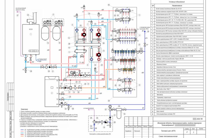 Здесь представлены фрагменты проектного раздела ТМ (тепломеханические решения), выполненного для Индивидуального Теплового пункта (ИТП) в отдельной секции в посёлке таунхаусов "Александровский" (Московская область, Красногорский район).