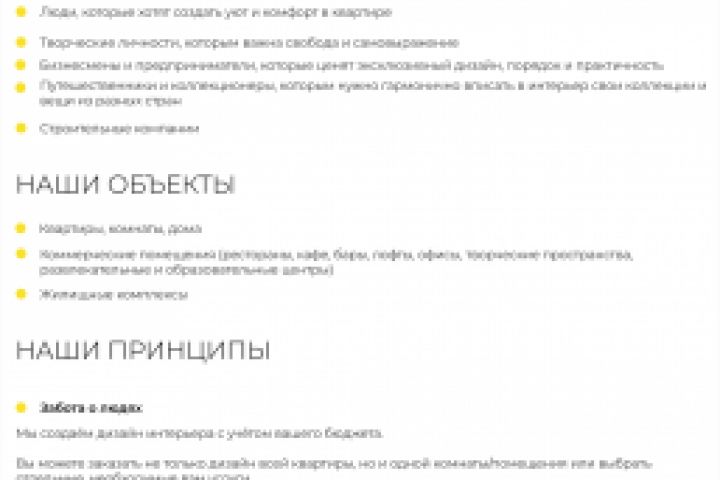Создание текста для сайта студии - дизайна INTERIOR DESIGN Описание компании, её объектов, принципов, целевой аудитории