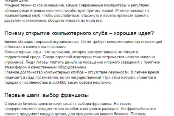 Информационный текст на тему открытия компьютерного клуба по франшизе. Описаны преимущества этого вида бизнеса, первые шаги и особенности франшизы.