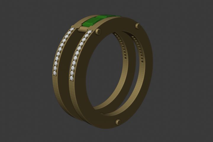 Кольцо с камнями Модель дляпечти на 3D-принтере Размер-3 Вес-3,65ш Желтого Золота 14К