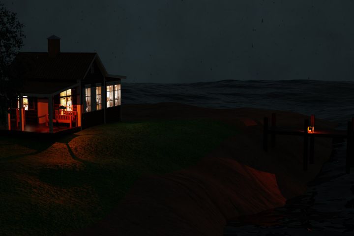 Визуализация загородного домика у реки.