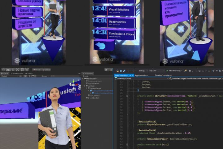 Прототип презентации с использованием дополненной реальности. Используемые технологии – Unity3D, C#, Vuforia