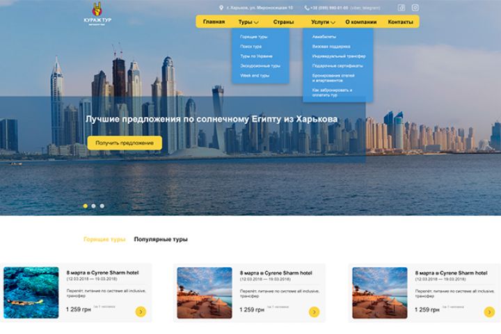 Адаптивная верстка проекта "Кураж Тур" Использовала технологии на практике: - HTML5 + CSS3 + JS - Кроссбраузерность (Chrome, Firefox, Edge, Safari Mac OS, Opera, Yandex, iOS, Android) - Сборщик Gulp