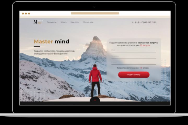 Приземляющая страница для стартап-сообщества из Москвы "Мастер Майнд".