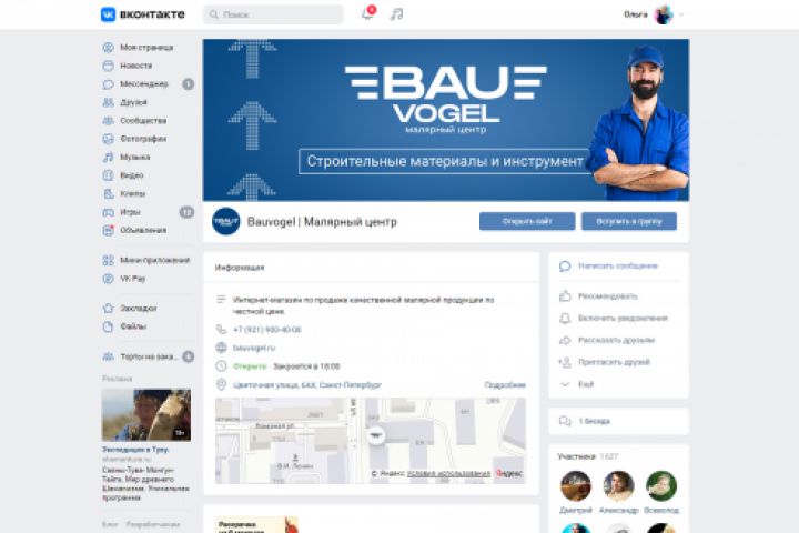 Обложка и аватарка для группы магазина строительных материалов Вконтакте.