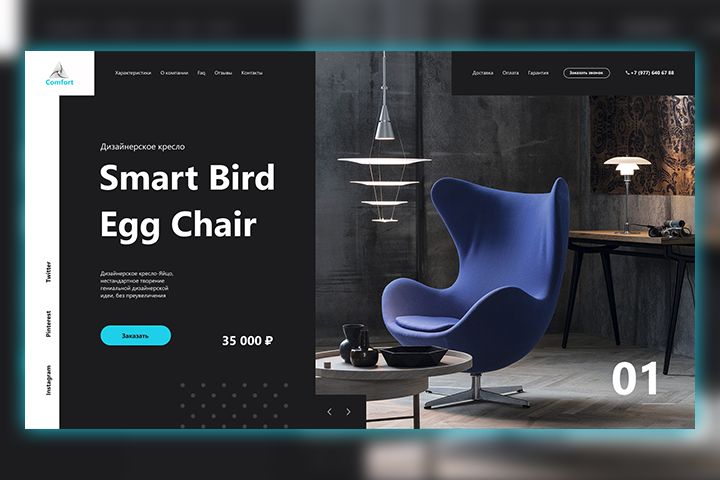Требовалось разработать landing page для интернет магазина "Comfort" по продаже дизайнерского кресла.