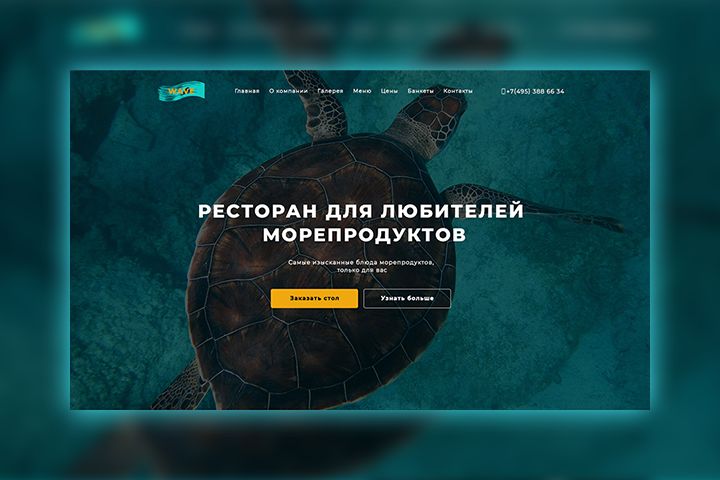 Сайт под ключ для компании "WAVE". Был создан графический дизайн, особое внимание побудить клиента заказать столик в ресторане.