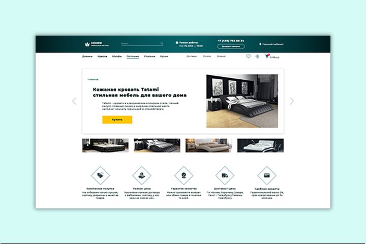 Разработка сайта под ключ для компании "Crown". Интернет магазин по продаже мебели. Сайт был разработан с целью заказать товар, были продуманы все экраны и их дизайн.