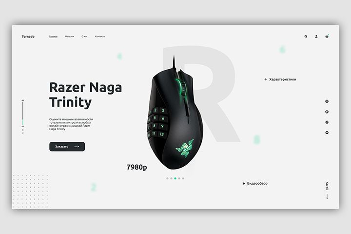Дизайн первого экрана интернет магазина Tornado.