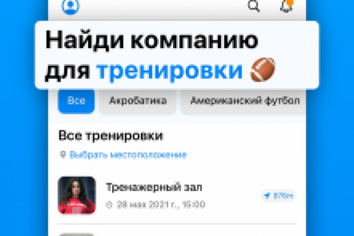 Приложение, соц сеть для поиска тренировок