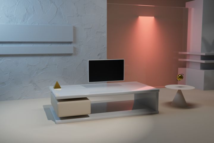 3D визуализация комнаты, моноблока, выставлено освещение холодного и теплого света