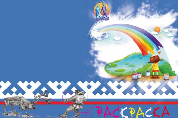 Раскраска включает 26 страниц и разделена на 2 части: гербы ЯНАО и природа Ямала.