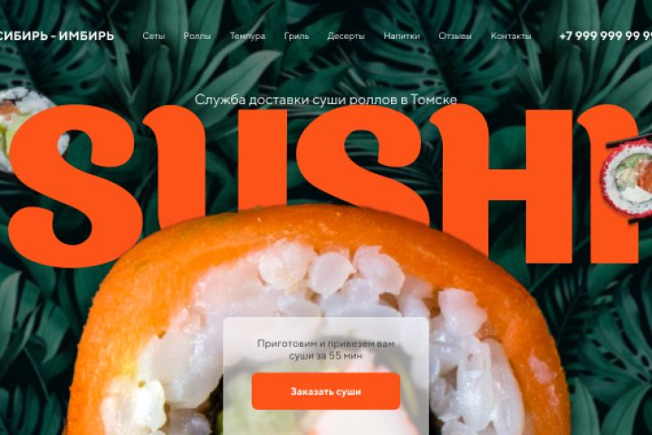 Создание сайта для продажи и доставки суши в городе томск. Сайт реализован на платформе Тильда с применением дополнительного html кода