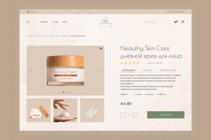 Интернет-магазин косметики. Более 10 страниц. В спокойных тонах, простой и стильный