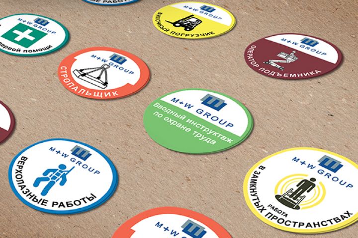 Создание стикеров на строительные каски для различных специалистов. Выполнено для строительной компании M+W Германия.