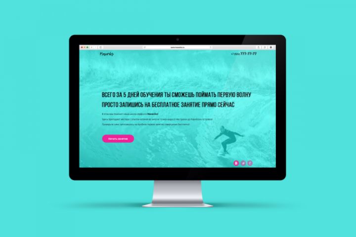 Задача: Созадть landing page для компании, которая организует обучение серфингу за границей на настоящих волнах и пляжах. Акцент сделан на уникальности сервиса и возможности сразу отправить заявку и забронировать тур