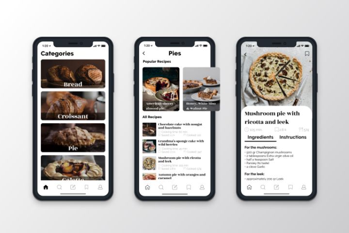 Дизайн интерфейса мобильного приложения рецептов выпечки.