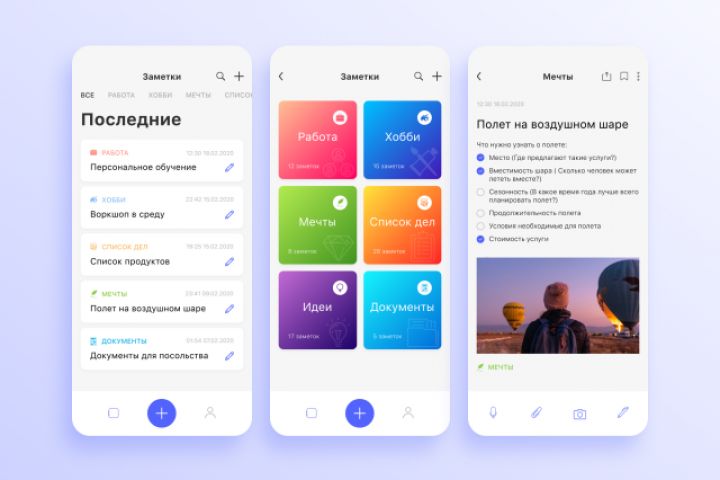 Дизайн приложения для создания и сортировки заметок.