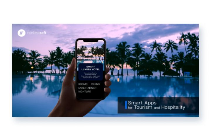 Баннер для рекламы приложения бронирования отелей.