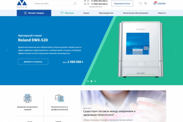 Адаптивная верстка интернет-магазина медицинского оборудования. Ссылка на главную страницу (можно посмотреть с разных устройств) — http://aikaz.top/portfolio/medica/