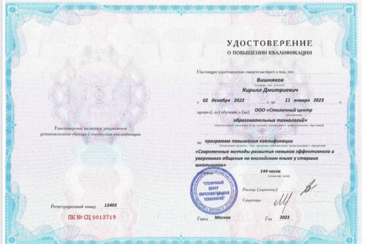 Окончил программу повышения квалификации