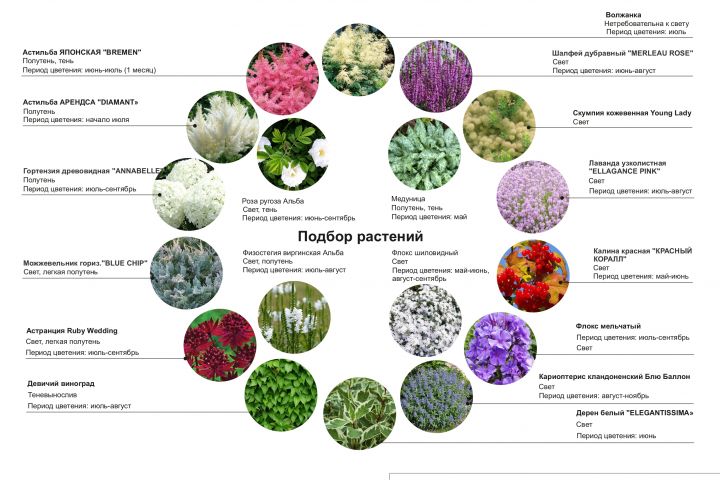 Подбор растений эскизного ландшафтного проекта Воздушный сон