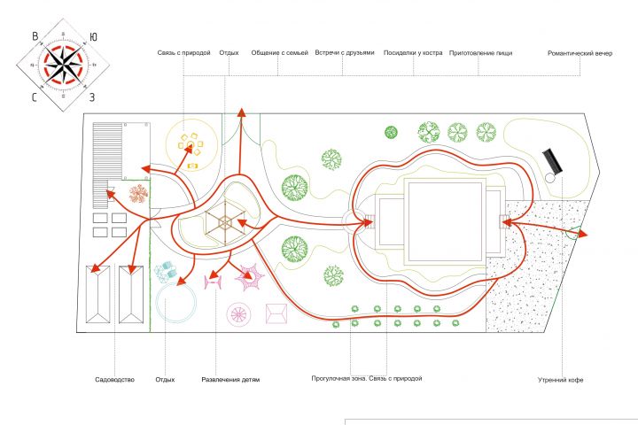 Карта перемещений эскизного ландшафтного проекта Воздушный сон