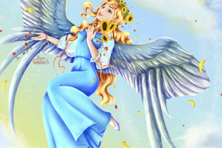 Иллюстрация с персонажем сказочной эльфийкой с цветами