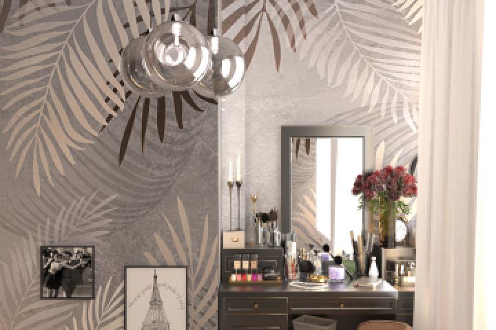 Интерьер спальни. Стол для макияжа. Ключевые слова: #Интерьер, #3DsMax, #V-ray, #Interior, #Light Interior, #Архитектурная визуализация, #Kitchen. #Архвиз, #Визуализация, #Modern style interior. #Bedroom interior, #Makeup table.