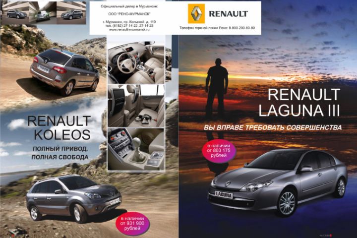 Формат: разворот под склейку (А4 х2). Обтравка фото автомобиля (справа) в Фотошоп. Компоновка + текст: CorelDraw.