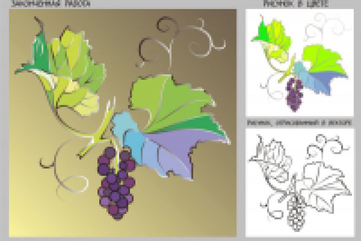 Лоза, плоды и листья винограда. Vine, fruit and grape leaves.