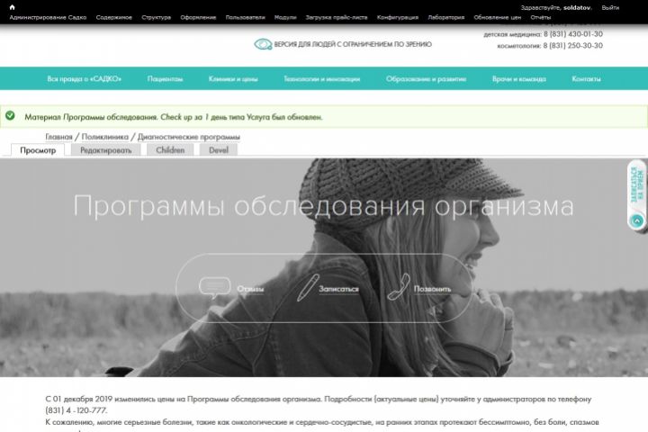 Сайт клиники. Верстка специализированного раздела для клиентов клиники, CMS Drupal.