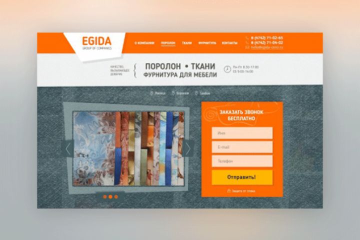 Разработка Landing Page для EGIDA, которая занимается продажей материалов для изготовления мебели.