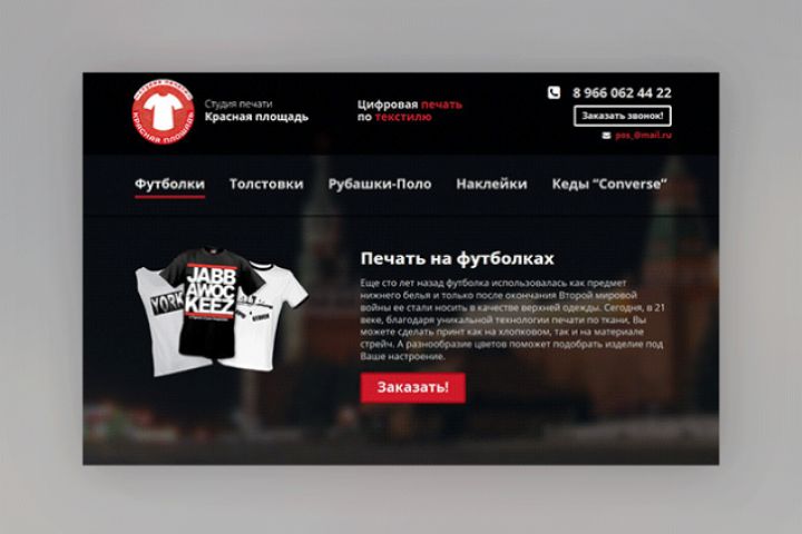 Разработка Landing Page для студии печати "Красная площадь". Грамотное использование современных эффектов.