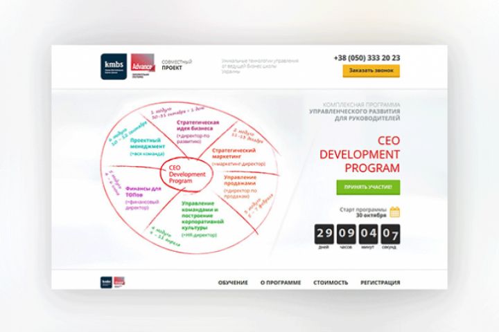 Разработка Landing Page для продвижения новой программы всемирно известной Киево-Магилянской Бизнес-Школы (kmbs) и образовательного проекта Advance.