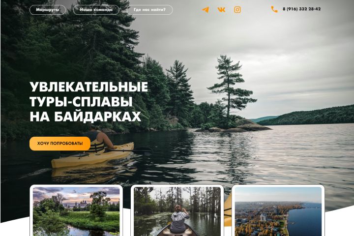 О проекте — разработать небольшой лэндинг по сплавам на байдарках и каяках. Сайт должен быть максимально подвижным, так как ребята постоянно придумывают новые экскурсии и направления.