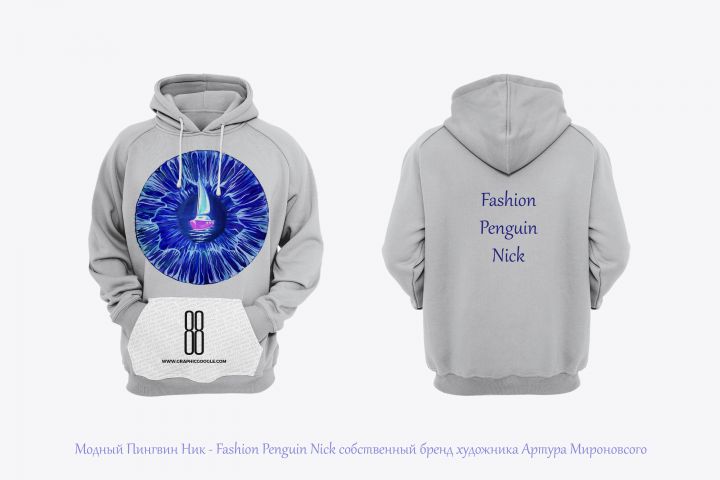 Моя картина маслом креатив фэнтези. Решил напечатать на одежде. На спине напечатан бренд "Модный Пингвин ник," который придуман мною.