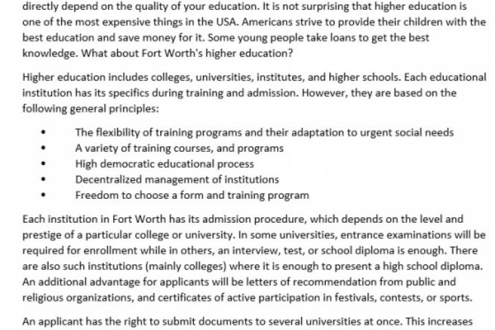 Небольшая статья с сылками для образовательного сайта об школьном образовании в Fort Worth
