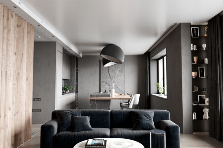 Визуализация помещения в трёх вариантах светового оформления (дневной свет, вечерний акцентный свет, вечерний основной свет).