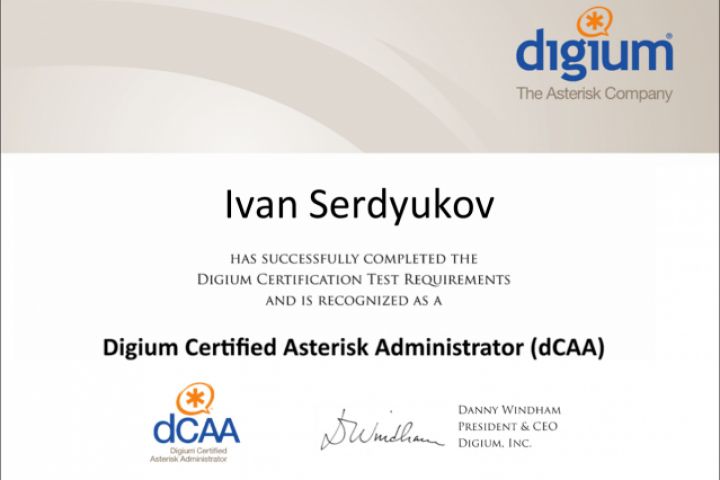 Сертификат от Digium