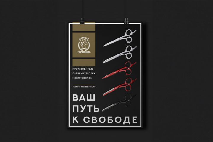 Имиджевый постер для бренда парикмахерских инструментов "Mustang"