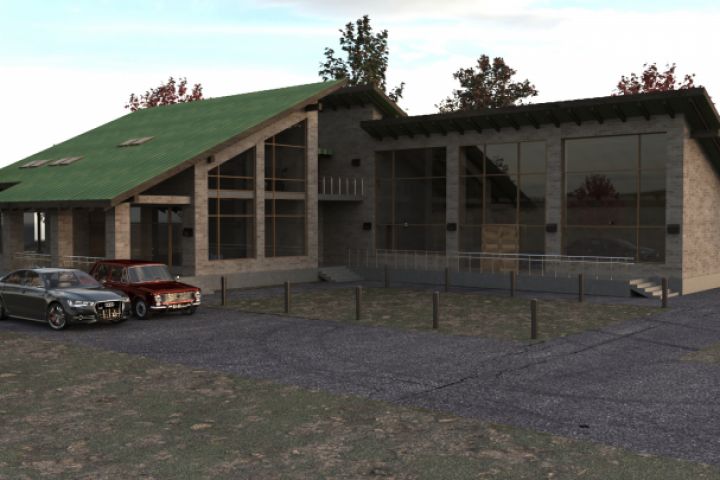 Проектирование дома было выполнено в программе Revit, визуализация 3dsMax