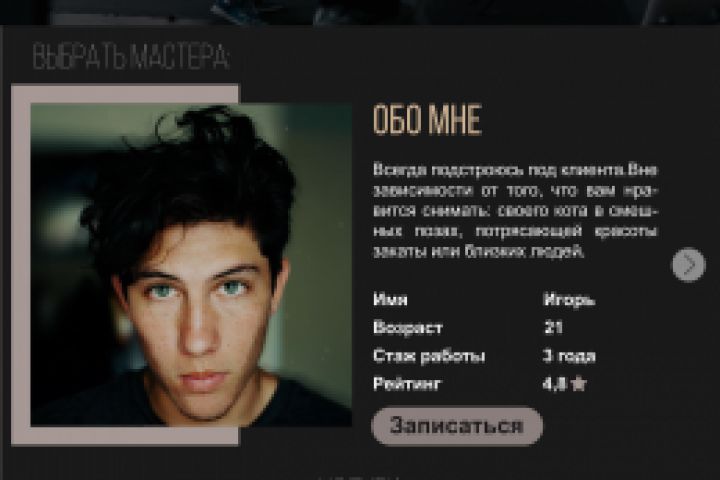 Разработка сайта для фотостудии, где каждый сможет выбрать себе нужного мастера, оставить отзыв и прочитать о компании